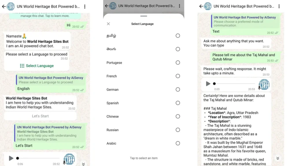 Here’s an example of an AI WhatsApp chatbot we built for the UN World Heritage.